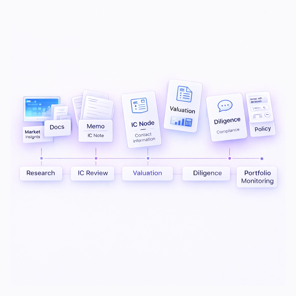 Orchestrate research, diligence, compliance, and knowledge preservation as a unified system.